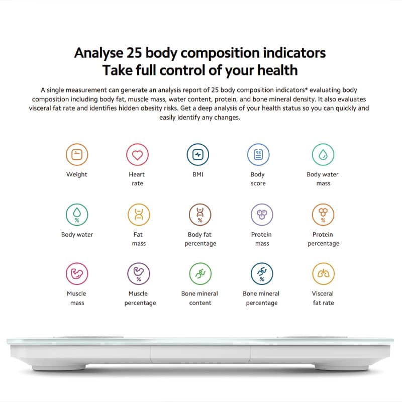 ترازوی هوشمند Xiaomi Body Composition Scale S400 یکی از پیشرفته‌ترین ابزارهای پایش سلامت بدن است که با بهره‌گیری از فناوری اندازه‌گیری دوفرکانسی BIA، امکان تحلیل دقیق ترکیب بدن را فراهم می‌کند. این ترازو فراتر از نمایش وزن عمل کرده و با بررسی شاخص‌های کلیدی سلامتی، دیدی جامع از وضعیت فیزیکی بدن در اختیار شما قرار می‌دهد.