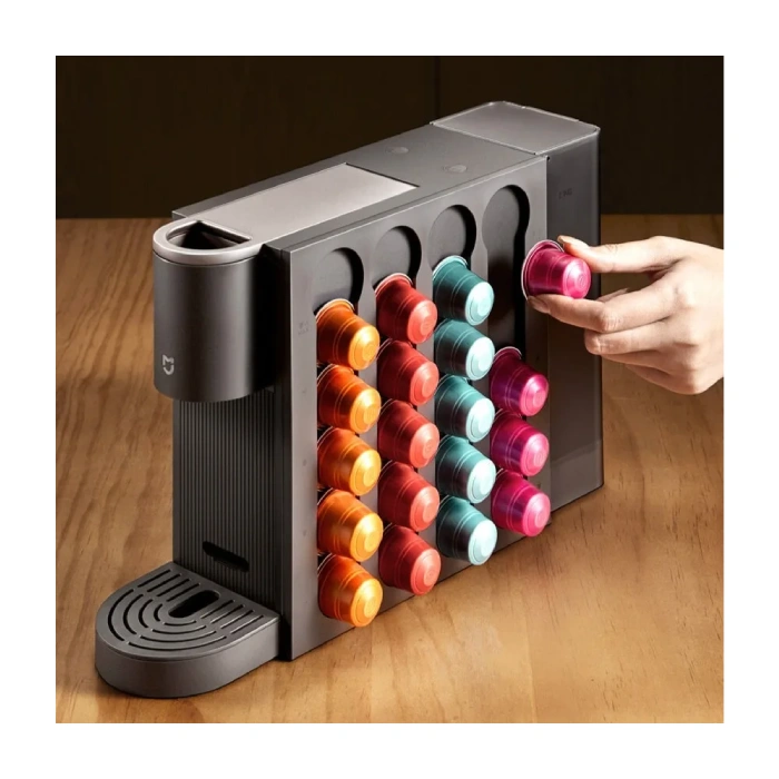 یکی از نکات جالب طراحی Mijia S1، قفسه مغناطیسی نگهدارندهی کپسولها است که میتواند به کناره دستگاه یا حتی سطوح فلزی مانند یخچال متصل شود. این ویژگی باعث صرفهجویی در فضای آشپزخانه میشود و تا ۲۰ عدد کپسول قهوه را در خود جای میدهد.