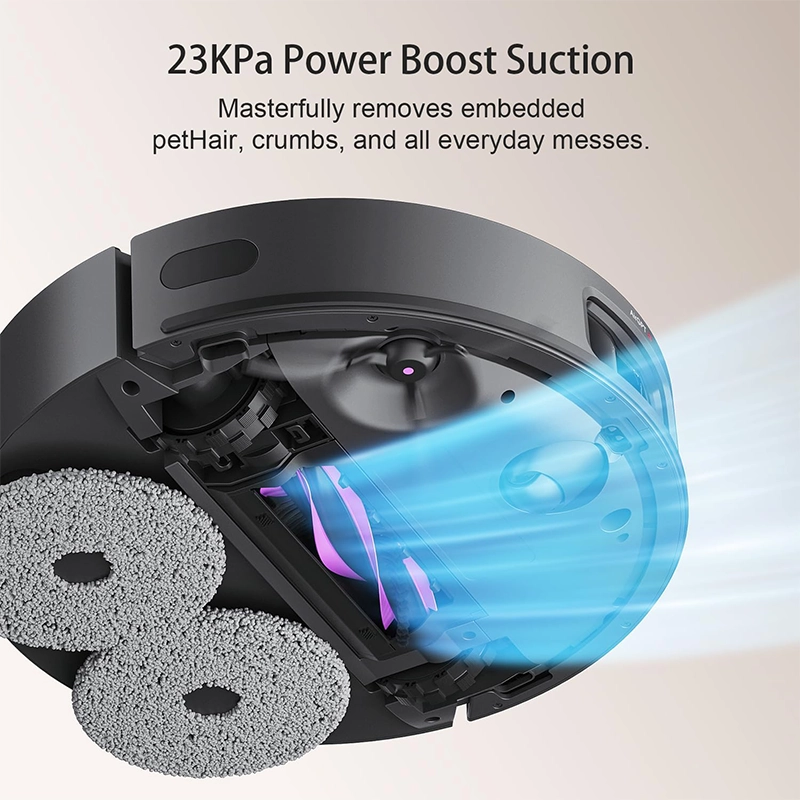 Airbot L50 Master به موتور براشلس توربوی نسل جدید مجهز شده که قدرت مکش فوقالعاده 23,000Pa را در اختیار شما قرار میدهد. این میزان مکش، حتی ریزترین ذرات گردوغبار، موی حیوانات خانگی و آلودگیهای عمیق داخل فرش را بهراحتی جمعآوری میکند.