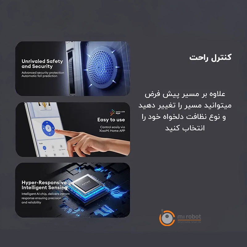 شامل Spot Cleaning، Edge Cleaning و Deep Cleaning برای انواع شیشهها، حتی بدون قاب.کنترل هوشمند با اپلیکیشن Mi Home (Mijia)
