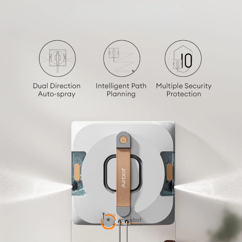 ربات با مکش قوی روی سطح شیشه میچسبد و با چهار پد شناور میکروفایبر، لکهها و گردوغبار را بهطور کامل پاک میکند.سیستم اسپری آب اولتراسونیک سهجهته