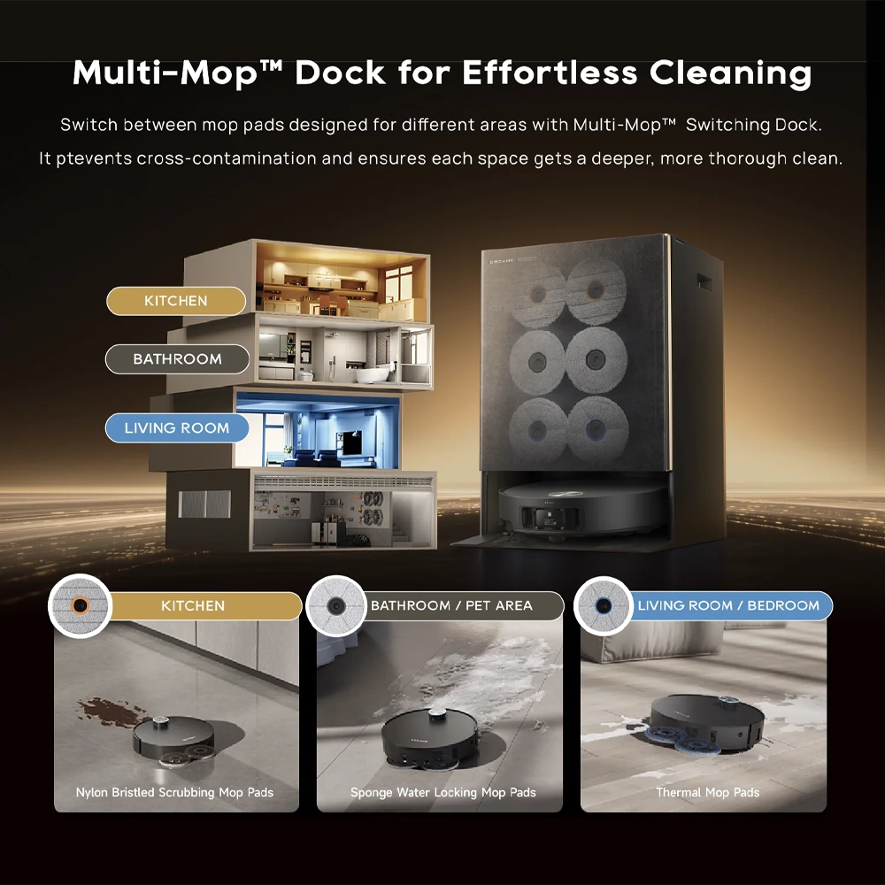 Matrix10 Ultra نه‌تنها جارو می‌کشد، بلکه شستشو، خشک‌کردن و حتی نگهداری خود را نیز به‌صورت هوشمند انجام می‌دهد؛ انتخابی ایده‌آل برای خانه‌های مدرن و خانواده‌های پرمشغله.