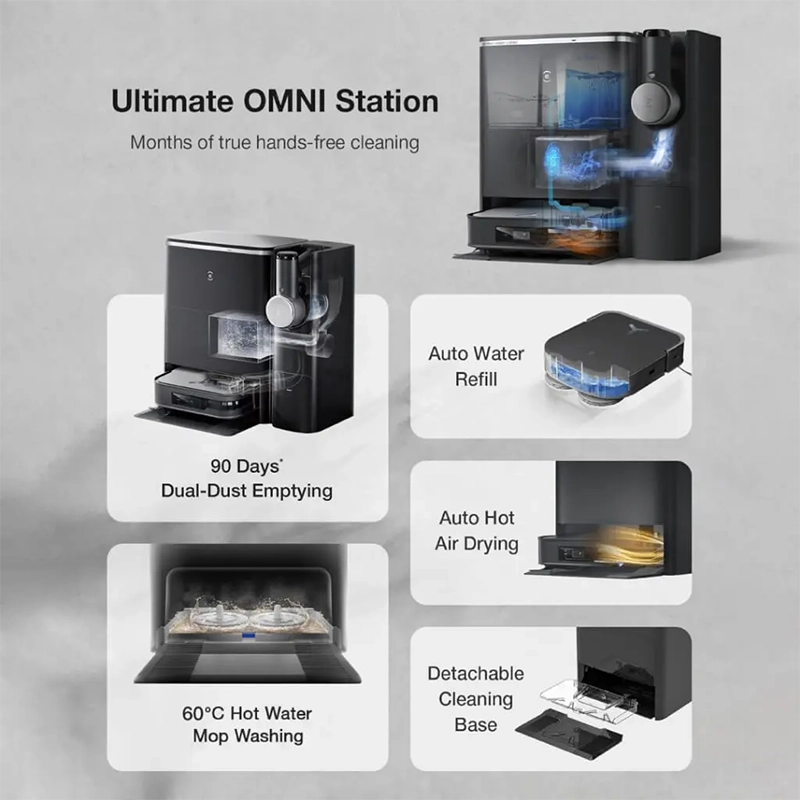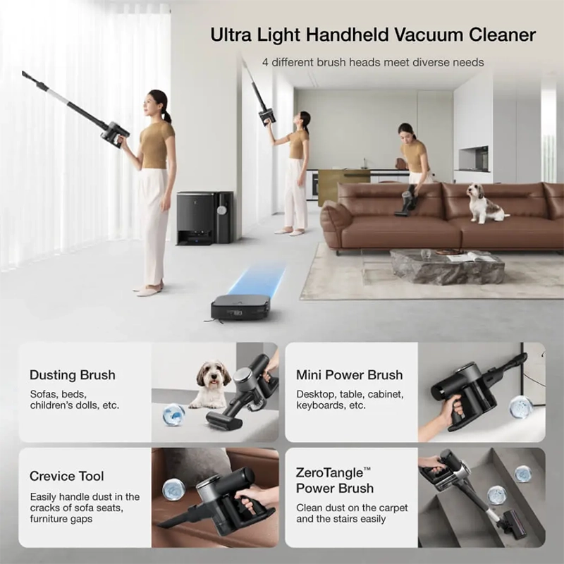 این مدل ترکیبی، شامل جارو رباتیک + جارو دستی شارژی در یک پک است و با قدرت مکش 8700 پاسکال، شستوشوی تی با آب داغ و ایستگاه OMNI کاملاً خودکار، تجربهای بیدردسر از نظافت را برای شما فراهم میکند.