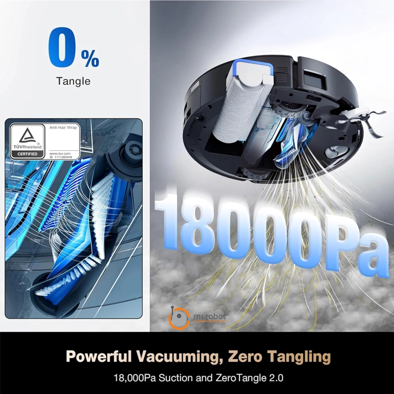 یکی از بزرگترین مشکلات جاروهای رباتیک قدیمی، گیر کردن مو در برس اصلی بود. اکووکس این مشکل را با ZeroTangle 2.0 بهطور کامل حل کرده است.