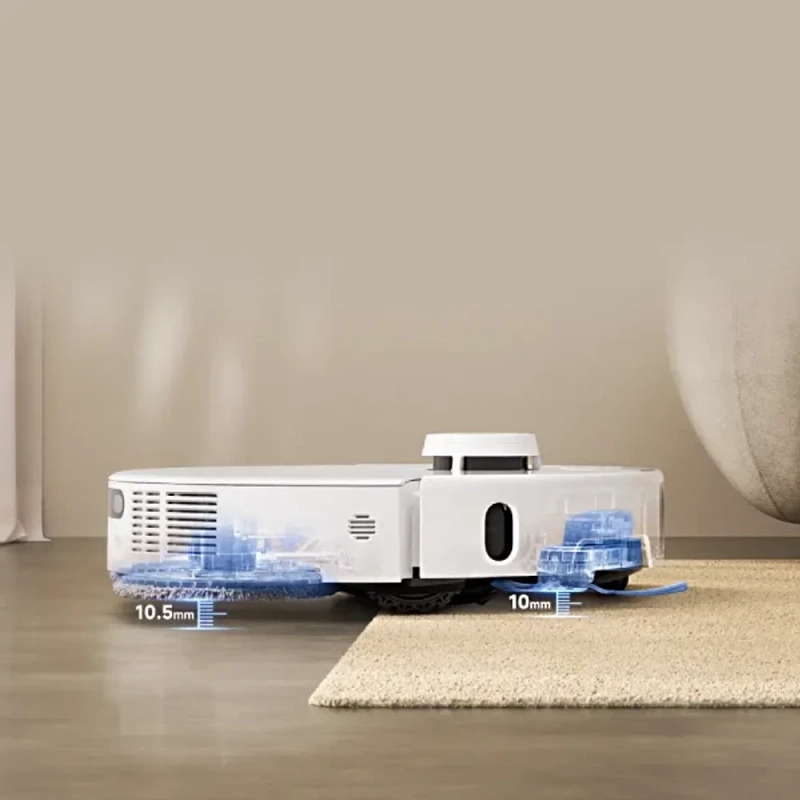 به لطف برس کناری و پد تی بازشونده، این جارو رباتیک بهراحتی تا لبه دیوارها، گوشهها و اطراف پایه میز و صندلی نفوذ میکند.