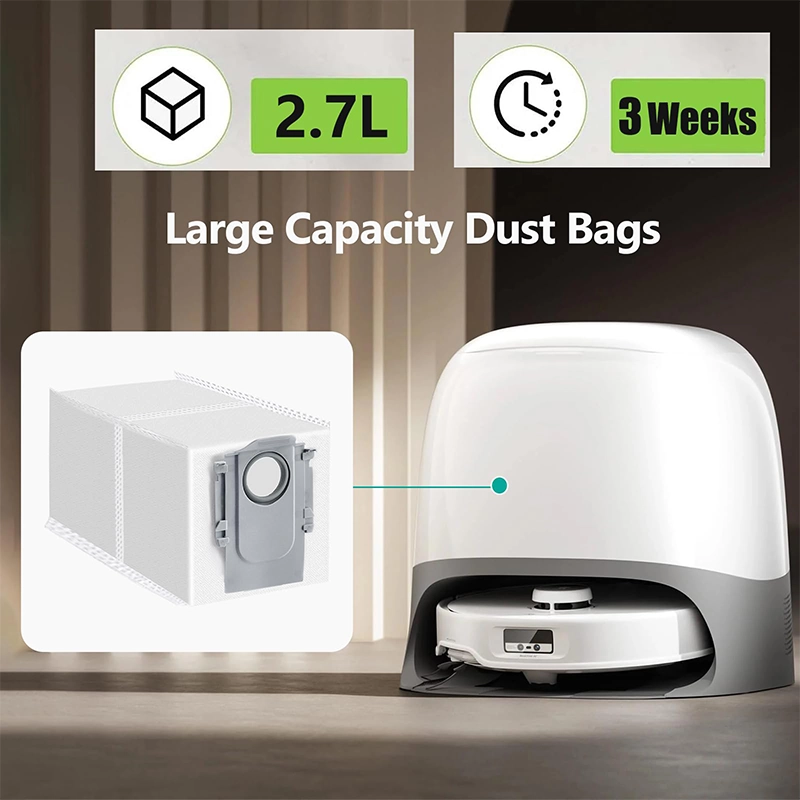 کیسه Roborock Qrevo Curv داخل داک تخلیه خودکار قرار میگیرد و پس از هر بار نظافت، زبالههای جمعآوریشده را بهصورت کاملاً بهداشتی ذخیره میکند. ساختار چندلایه این کیسه باعث میشود حتی ریزترین ذرات گرد و غبار نیز درون آن باقی بمانند و به هوای محیط بازنگردند. استفاده از کیسه اورجینال، عملکرد صحیح سیستم تخلیه را تضمین میکند.