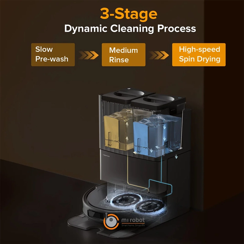 Roborock Qrevo L به دو پد تی چرخشی مجهز است که: