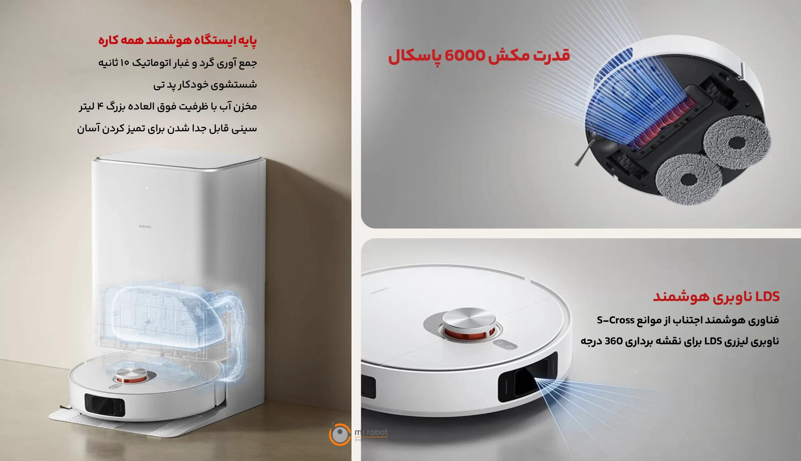 مکش قدرتمند 6000Pa – جمعآوری عمیق گردوغبار